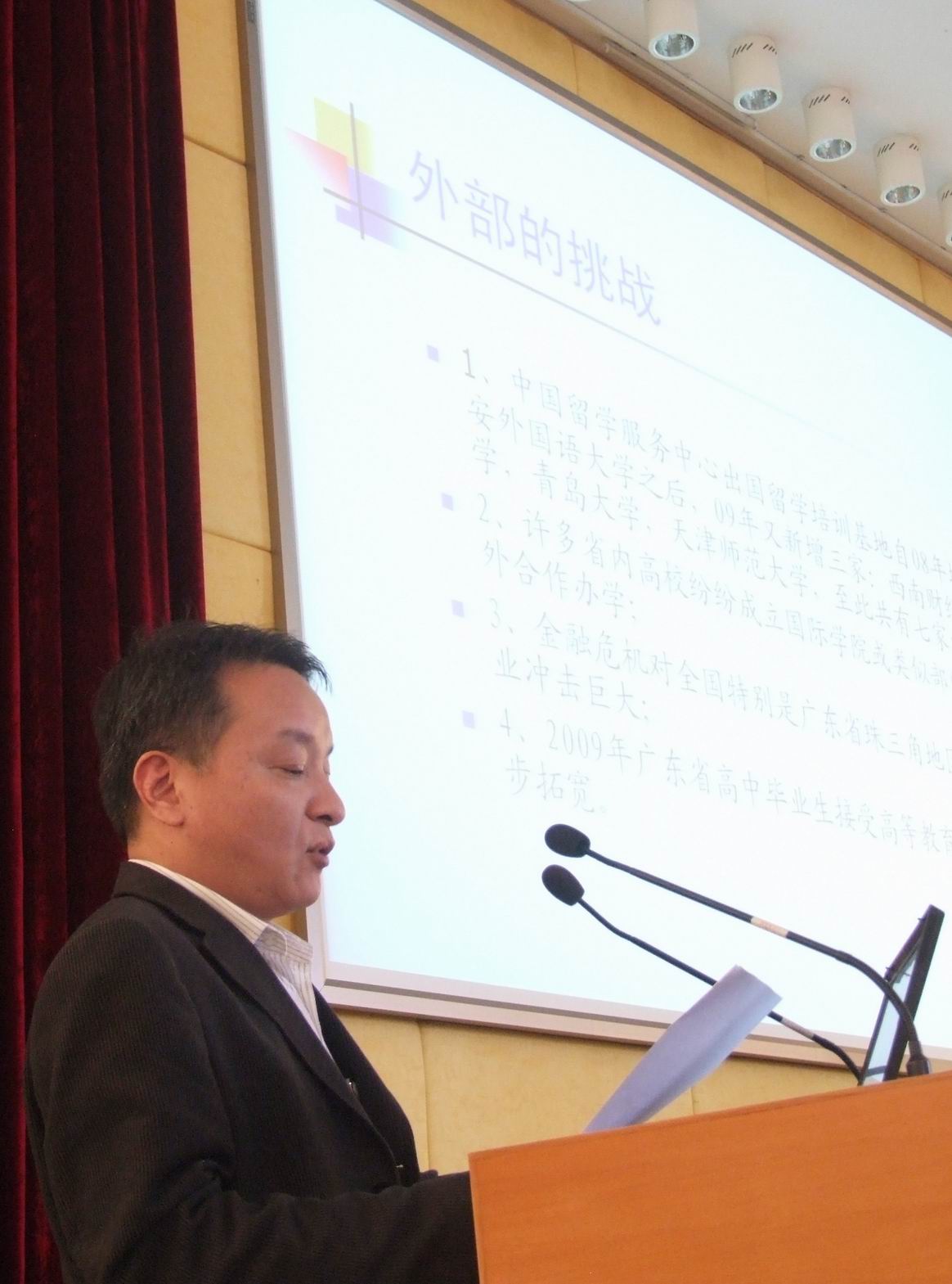 隋广军在谈到召开此次会议的原因时指出,加强财力保障首先是为了我校能建设成国际化特色鲜明的高水平教学研究型大学,建设成让社会满意、家长满意、学生满意的大学。他形象地把当前学校的发展比喻为“正在爬坡”,而学校属于资金密集型行业,每一方面都需要大量资金支持,因此要为学校的科学发展未雨绸缪,尽早谋划。其次是学校现有的增收项目,包括优势项目都面临全面的、多方位的、日益激烈的竞争。另外,加强财力保障有助于摸清情况,了解问题所在,为下一步同舟共济推动我校发展打好坚实基础。