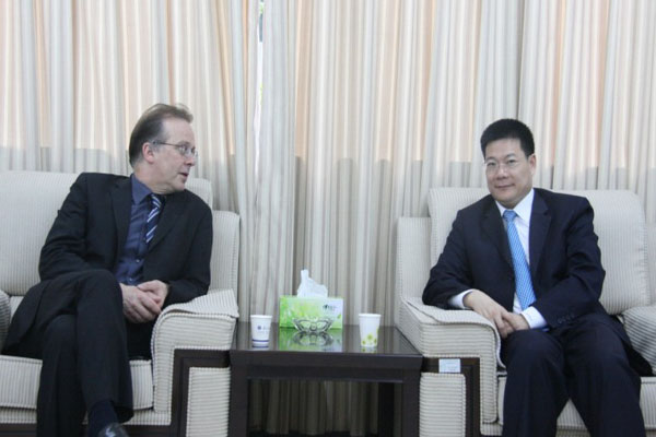 仲伟合为Donald Finlay博士颁发了客座教授聘书。Donald Finlay表示能担任广外客座教授一职他感到非常荣幸,他说优秀的广外的教育在英国名声很好,随着教育国际化程度的加深,他希望两校能进一步加强交流与合作,促进学生交换、教师交流和教学科研等事宜的合作。