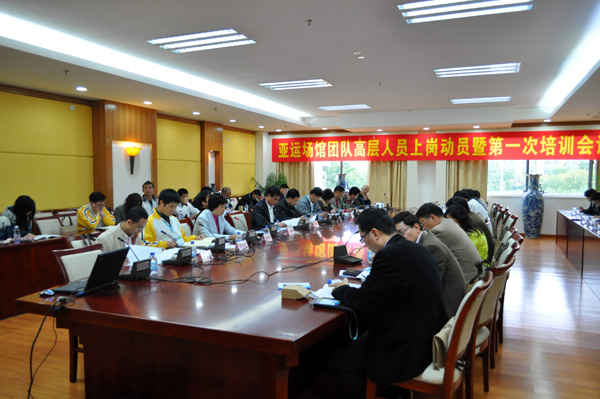 本网讯 4月15日下午,我校亚运场馆团队高层人员上岗动员大会在我校南校区第一会议室举行。据悉,我校南校区体育场馆在亚运会与亚残会期间将成为今年广州亚运会的男女排球比赛场地,而足球场则会承担男女足球队训练的任务。届时,在我校举行的亚运会比赛每天有四到六场。面对此艰巨的任务,本次亚运场馆团队高层人员上岗动员大会共同探讨了我校亚运第二阶段工作的一些重要问题,包括亚运工作的具体分配、亚运场馆运行模式、相关政策与规范、比赛预测等。