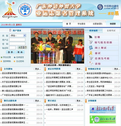 广东外语外贸大学亚运志愿者管理系统