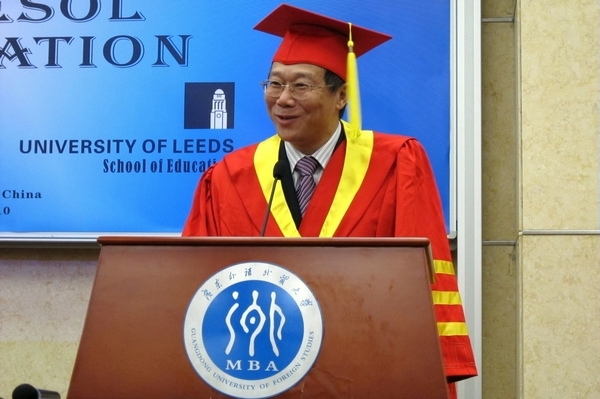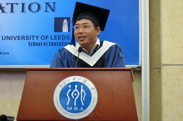 Richard Badger在讲话中对即将毕业的学员表示祝贺,同时也向为利兹大学与我校的合作教学项目作出巨大贡献的人员表示感谢。他说,第四期毕业的学员们付出了巨大的努力才取得今日的成就。学校、家人、朋友和老师的支持也是毕业学员们学习道路上的巨大动力。最重要的是,毕业学员们有自己的梦想和信念,支撑着他们克服一切困难。Richard Badger的讲话幽默风趣且真诚感人,不仅使人会心微笑,也显现了师生间真挚的感情。