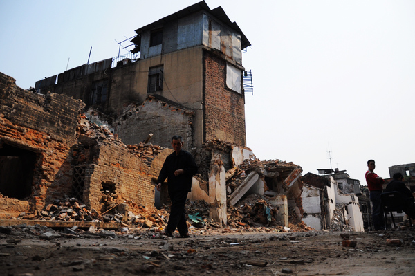 在西关的废墟上,我们注视着不远处忙碌的现代文明