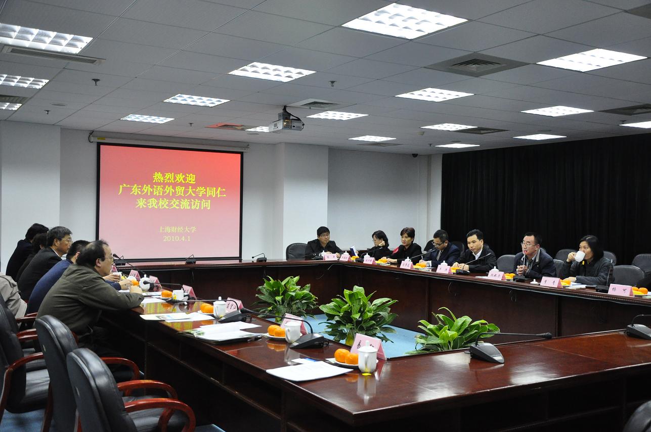 上海财经大学副校长丛树海,科研处处长干春晖,研究室主任应望江,发展规划处副处长刘庆生及相关学院领导与我校调研组进行了座谈交流。宾主双方就科研国际化、教师科研工作量考核、科研机构建设等问题进行了深入交流。顾也力表示,上海财经大学在教育、科研国际化方面取得的成就值得广外学习和借鉴。希望双方在教师科研工作量考核、科研创新团队建设等方面进一步加强交流、合作。