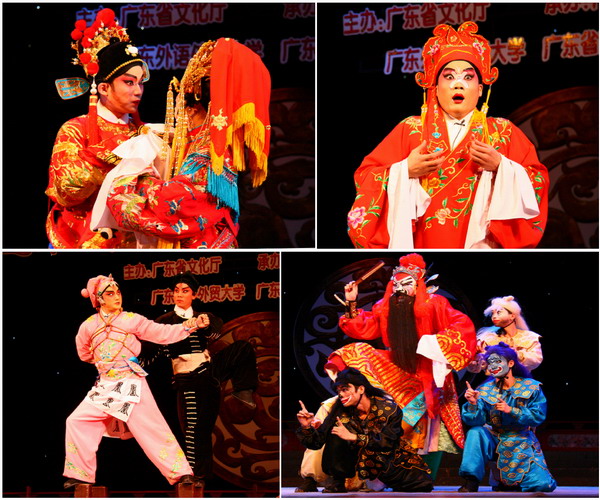 演出节取经典的粤剧唱段,从不同角度全面表现了粤剧的艺术张力。《钟馗嫁妹之上路》通过造型粗犷、雄壮浑厚的钟馗表现了以做功见长的“净”。《帝女花之香夭》为我们重现经典,百转千徊的唱词,花旦和小生的婉转悱恻将长平公主和驸马周世显的互怜互爱展现的淋漓尽致。由国家一级演员曾小敏主演的《荆钗记》则表现了正旦唱、念、做诸功兼备的特色。《活捉张三郎》中,丑角张三郎通过夸张的动作、滑稽的语言塑造了栩栩如生的人物形象,赢得了观众的阵阵掌声。国家一级演员彭庆华和国家二级演员王燕飞在《武松大闹狮子楼》中的精彩对打,展示了武艺精湛的武生行当。