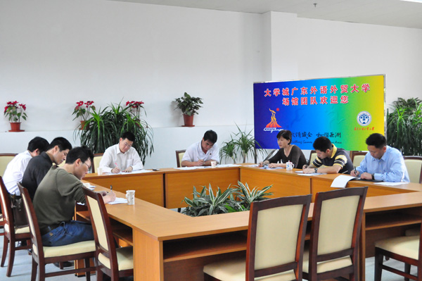 3月23日上午,我校亚运会场馆建设工作会议在南校区体育部会议室召开,会议主要讨论场馆建设下一步的工作安排及经费预算。广外场馆团队执行主任、副校长仲伟合,服务副主任、副校长陈子锐,媒体副主任、宣传部部长孔晓明,运行秘书长、体育部主任林少娜,体育部副主任李旭武等出席会议。