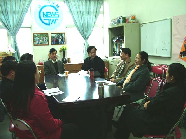 金耀观听取了工作汇报后,肯定了宣传部09年的工作成绩。他说,09年宣传部做了不少的工作,取得了很好的成效,得到了广大教工的好评。希望宣传部发扬好的工作作风,勇于创新,继续做好2010年的工作,争取再创辉煌。
