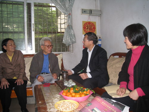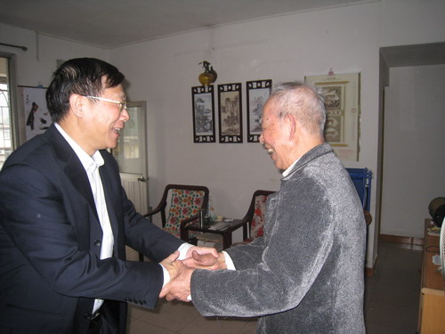 1月28日,陈建平在离退休党委书记施郁华的陪同下登门慰问我校唯一享受副省长级医疗待遇、延安时期的老干部、校老领导林如彤。校领导和林老亲切交谈,嘘寒问暖,把党的关怀和温暖送给林老。
