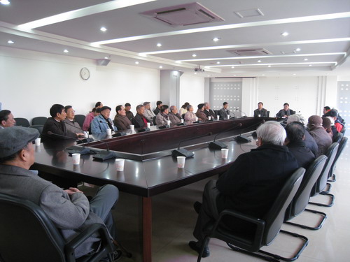 1月7日,校长隋广军和党委副书记陈建平在北校六教报告厅,代表校领导为全体离退休老同志通报情况送慰问。