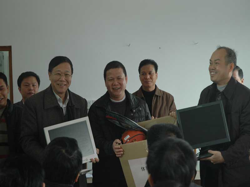 在捐赠仪式上,陈建平代表大学党委向村小学捐赠了5台电脑及价值约2500元左右的学习资料,为村小学建立起图书室;向村委会捐赠了价值约1500元左右的农业实用书籍、vcd教材及文化知识读物,为河东村建立起村文化室。