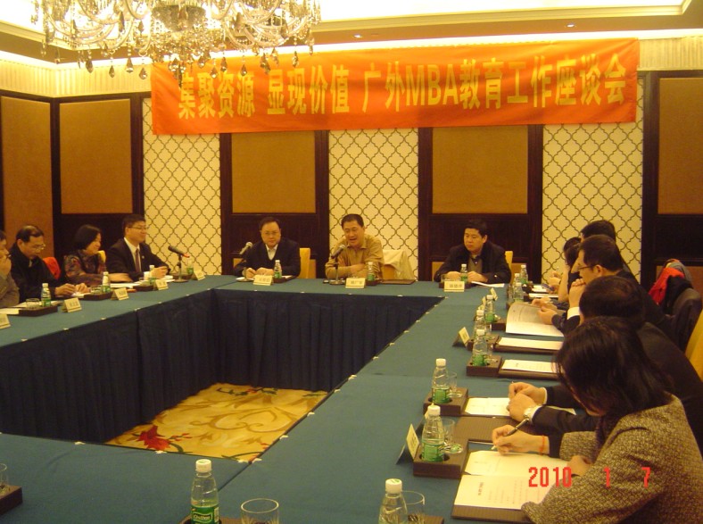 本网讯 1月6日上午,以“集聚资源,显现价值”为主题的广外MBA教育工作座谈会在番禺星海湾酒店召开。校长隋广军,副校长石佑启、陈德萍,管理学院院长杨晓燕,科研处副处长李青,商英学院副院长朱文忠,任课教师代表杨韶刚、黄磊、张武保、姚军,MBA教育中心副主任吴易明、主任助理马绍壮及MBA学生联合会代表主席王进宏和副主席扶艳芬等出席了本次会议,会议由MBA教育中心执行主任孙建军主持。