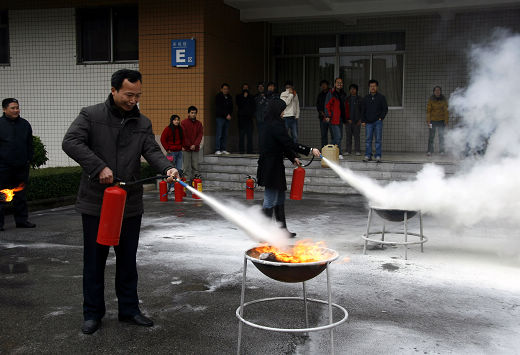 本次培训,特邀保卫处安防科的杨日光老师、莫国兴老师主讲。首先,他们就消防安全的意义、防火和灭火的种类、人员安全疏散、灭火器的种类及使用要领等基本消防安全知识进行了讲解。接着,南校区还在空旷地进行灭火器使用的演练。北校区因天气原因,播放了消防安全教育光盘,消防演练将择时进行。