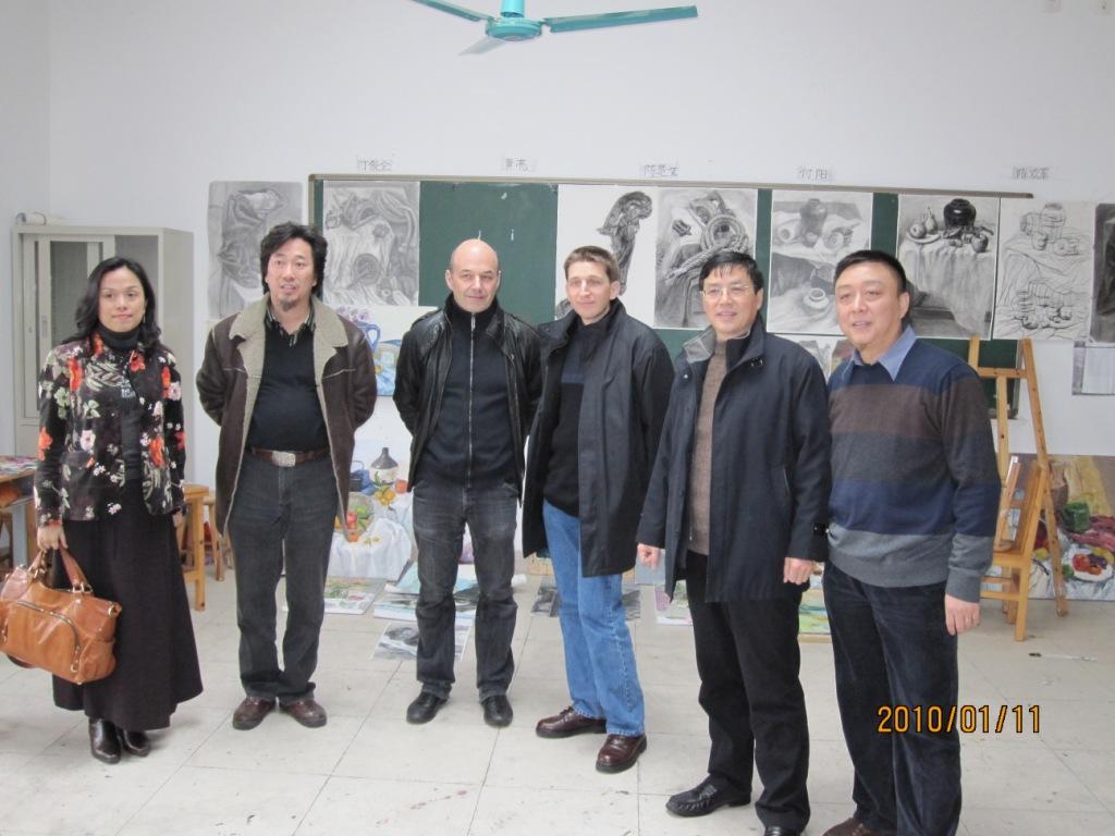 代表团首先到我校南校区艺术学院参观并座谈。他们在艺术学院副院长李于昆等的陪同下,饶有兴趣地欣赏了艺术设计系学生在江西婺源写生的绘画展、舞蹈室的舞蹈课和学生的绘画作品。