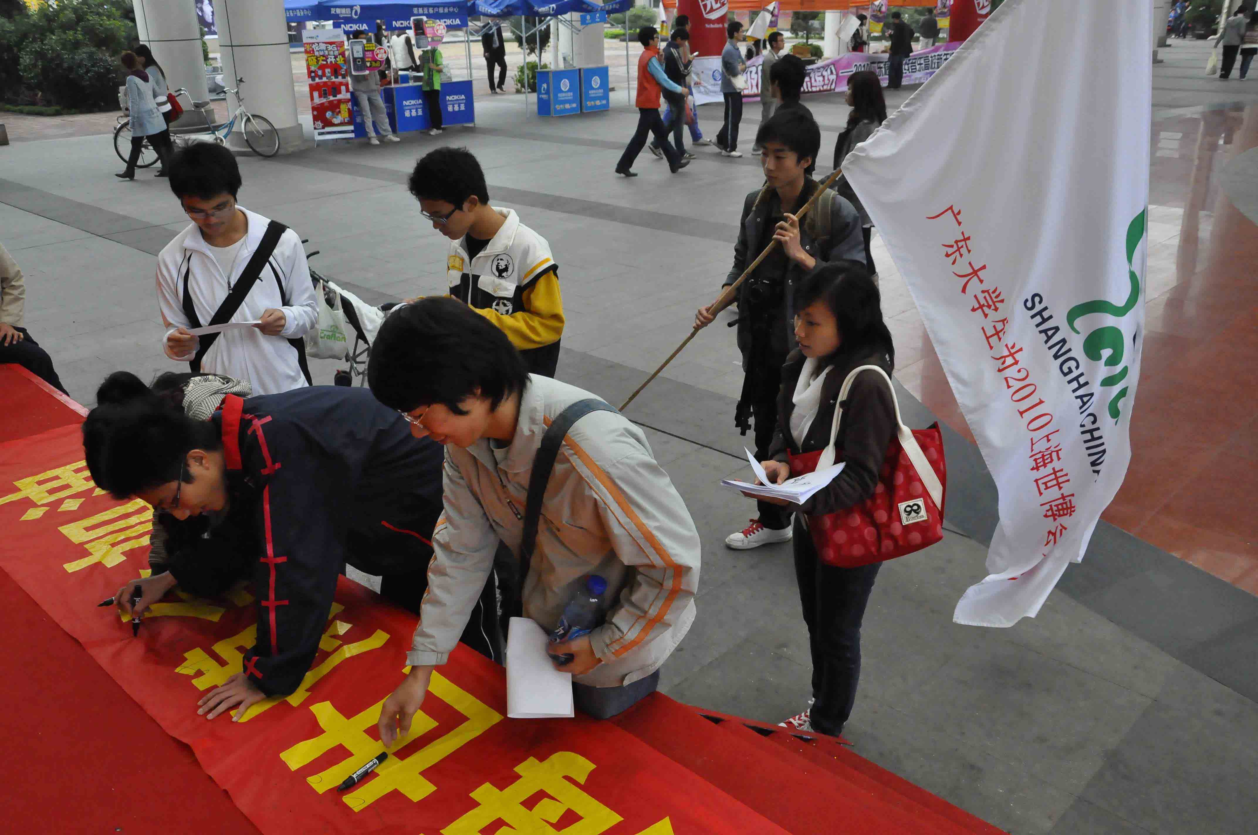 广东大学生签名支持世博会