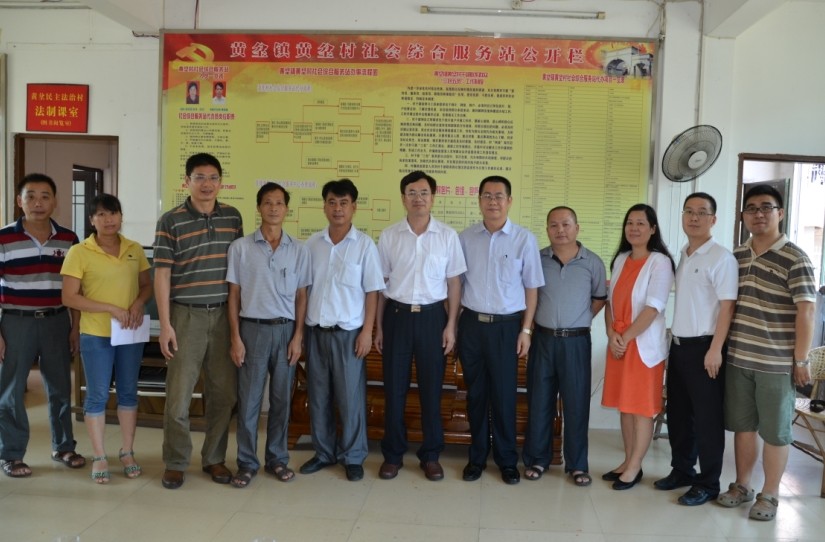 学校领导与阳山县领导座谈 何传添到黄坌村进行指导、视察我校的扶贫开发工作,并正式送郑安振到村开展工作。在黄坌村委会,何传添等与黄坌村干部、我校驻村干部座谈,就黄坌村基本情况、村集体经济项目、贫困户帮扶情况、驻村干部的工作和生活等进行交流,勉励郑安振尽快进入角色,传承创新地开展工作,多向学校历任驻村干部、县镇村干部学习,把工作做实、做好,同时还慰问了村干部,视察了村集体经济项目黄坌村生猪养殖基地等。
