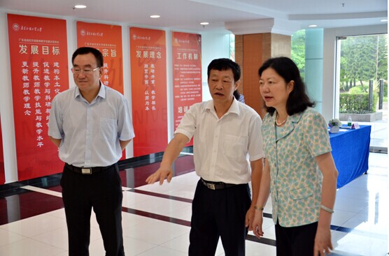 本网讯 6月23日,2014年广东省“珠江学者”答辩会议在我校北校区教师发展中心拉开序幕,会议历时一周。广东省教育厅巡视员罗远芳、副厅长李学明,师资管理处处长傅湘龙等出席会议,我校校长仲伟合、副校长许国彬、顾也力、石佑启、何传添到场迎接并陪同省厅领导参观我校教师发展中心。