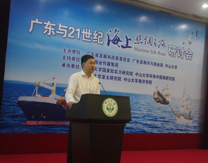 月5日,由广东省发展和改革委员会、广东省海洋与渔业局、中山大学主办的“广东与21世纪海上丝绸之路研讨会”在中山大学南校区举行,我校党委书记、广东国际战略研究院常务副院长隋广军教授应邀出席,并作了“构建21世纪海上丝绸之路的战略路径选择”的专题发言,在与会学者中引起共鸣和积极反响。