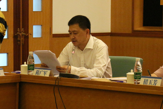 我校党委书记、董事会常务副主席隋广军对第三届董事会的工作进行了总结。他谈到,为顺应广东省“三个定位,两个率先”的发展目标,我校紧抓机遇,建设了“两院两基地”(广东国际战略研究院、国际服务外包研究院、国际化人才培养基地和国际服务外包人才培养基地),推出了学校哲学社会科学繁荣计划、文化“走出去”计划和“2011计划”等项目。同时,我校2013年被广东省确定为首批6所深化自主办学综合改革试点高校之一,承担起了广东省高等教育改革“探路”的艰巨任务。在与董事单位的交流合作上,我校也与多个单位签署了战略合作协议,并共同承办了多个项目。董事会除了在就业方面对我校毕业生提供了便利之外,还在资金、人才培训、教育、宣传等方面给予了较大的支持。
