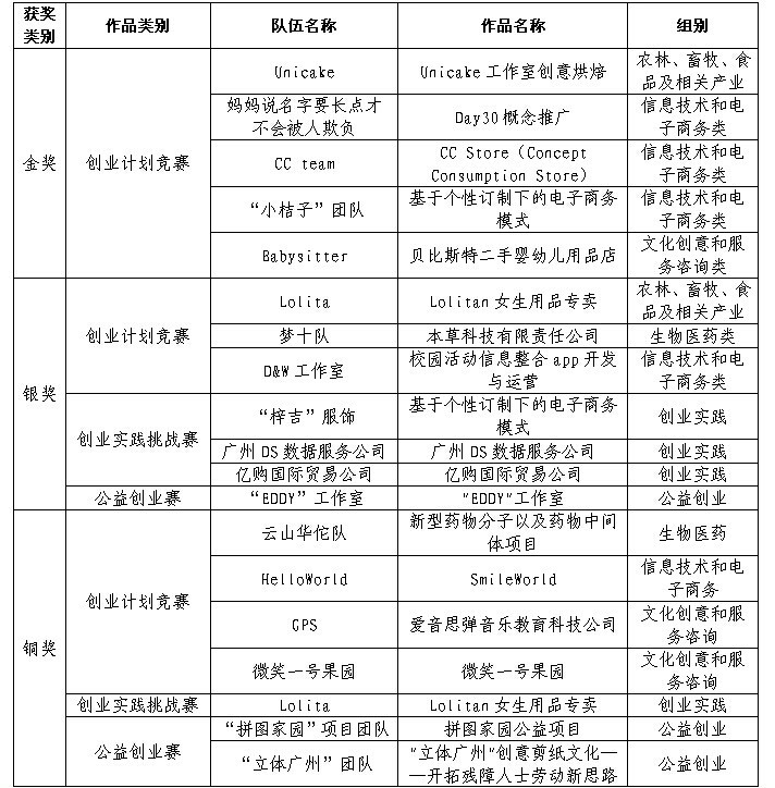 附:2014年“挑战杯·创青春”广东大学生创业大赛我校获奖名单