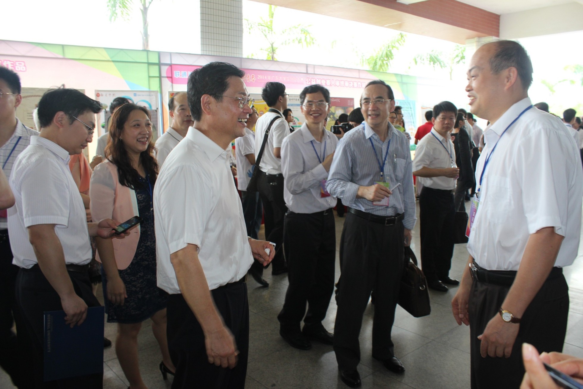 5月17日上午,2014年“挑战杯•创青春”广东大学生创业大赛终审决赛暨第八届广东大中专学生科技学术节开幕隆重举行,省委副书记马兴瑞、副省长陈云贤、中国科学院院士计亮年教授、省委副秘书长魏建飞、省政府副秘书长林积以及各主办单位领导、省内各高校分管领导和团委负责人、入围决赛和前来观摩的700余支团队和近两千名学生代表参加了活动。我校党委副书记卢景辉在校团委书记谢秀兰的陪同下莅临现场,观摩指导。开幕式后,领导们参观了优秀作品展。