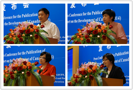 本网讯 5月13日,由教育部区域和国别研究培训基地我校加拿大研究中心主办,社会科学文献出版社协办的《加拿大发展报告(2014)》新闻发布会在我校国际会议厅举行。《加拿大发展报告(2014)》是全国第一本系统研究加拿大国情的蓝皮书,由我校校长、加拿大研究中心主任仲伟合及中心常务副主任唐小松设计并主编。