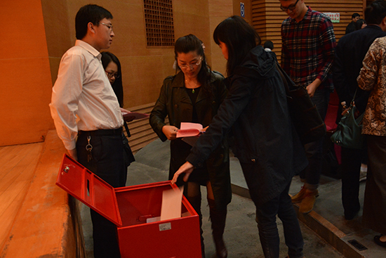 最后,与会人员对校级领导班子和校级党员领导干部参加教育实践活动情况进行了民主评议。