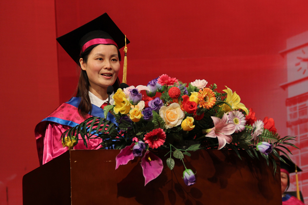 “没有爬不过去的山,用微笑迎接每一天,我们的生活充满惊喜。”继续教育(公开)学院杨妙新代表教师发言时对毕业生给予了殷切的希望,她希望学生们在步入社会这所大学之后能学会与人相处、团队合作、协调矛盾、忍辱负重。同时不忘从各种渠道汲取知识,开拓自己的视野;尽心尽力、恪尽职守,不弄虚作假,不盲目跟风,坚守做人的根本,勇敢地承担对家庭、对社会、对国家那份无可推卸的责任。