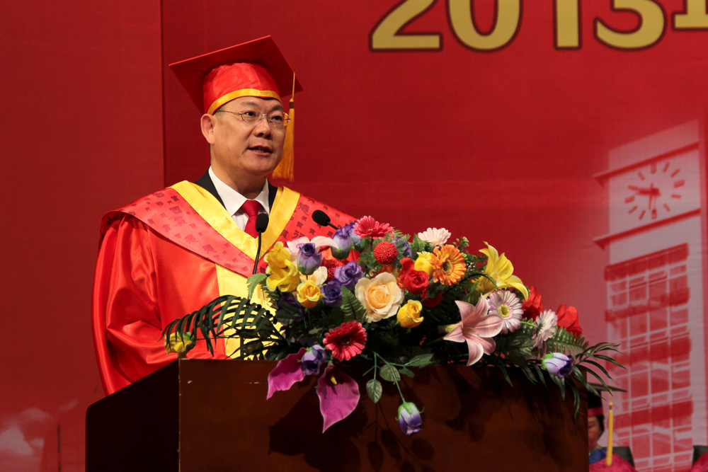 本网讯 白云山青,碧溪水蓝,岁流不居,春秋代序。12月26日,我校2013年冬季毕业典礼暨学位授予仪式在云山会堂举行。校长仲伟合发表激情洋溢的致辞,寄语学子在时代潮流面前hold住自己,并为18名博士学位、45名硕士学位和435名学士学位获得者颁发证书,一一拨穗。