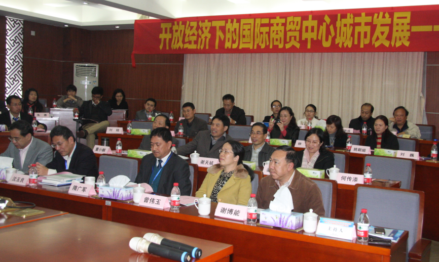 报告会现场 我校党委书记隋广军开放经济下国际商贸中心城市如何发展是一个重要的现实命题,期望会议的讨论和成果不仅限于学术交流,而是更加突出学术研究成果服务于社会,服务于地方经济发展,为广州新型城市化发展作出贡献。