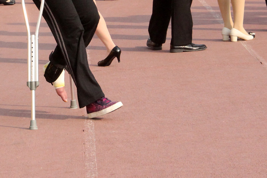 一位同学带伤参加招聘会