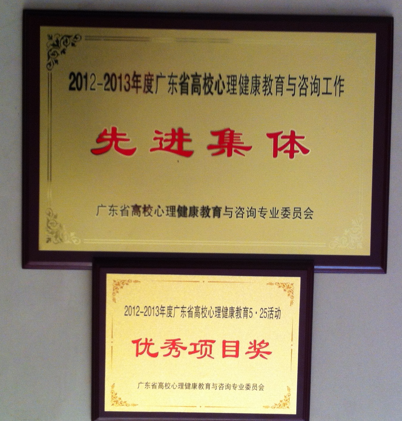 本次会议表彰了2012—2013年度先进集体和先进工作者,评选了2012—2013年度优秀论文和出版物。今年我校5·25心理健康主题教育活动以“遇见未知的自己”为主题,以学生喜闻乐见的方式引导学生关注心理健康、激发潜能、完善自我,受大会推崇,在评选活动中获得优秀奖。除学校获评2012-2013年度广东省高校心理健康教育与咨询工作,杨敏生获年度省高校心理健康教育与咨询工作先进个人,许国彬的著作《高校学生心理教育与咨询》、《大学生心理测查与行为指导》分别获省高校心理健康教育与咨询优秀出版物一等奖、二等奖。