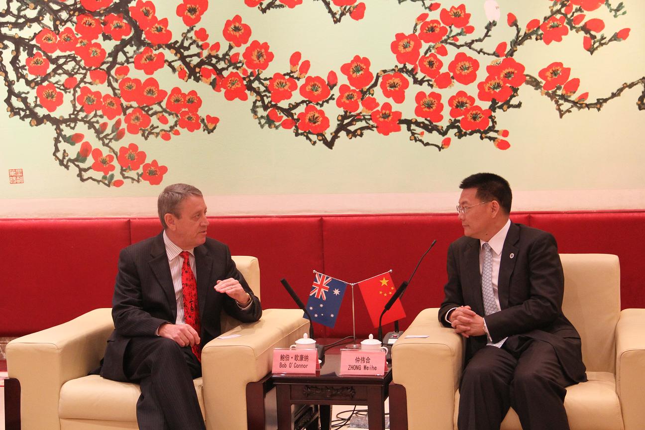 仲伟合对鲍勃一行的到来表示欢迎,并很高兴看到此次来访能就两校DBA项目进行深入洽谈,并确定了MBA学员交流计划。他表示,我校MBA学院虽成立历史不长,但是发展很快,并已取得不俗成绩。因为有着全英授课、国际化师资和完善管理等特色,我校MBA项目于2012年被评为全国十大特色MBA项目。仲伟合对QUT的MBA学生明年3月来我校交流表示欢迎,并相信MBA学院会精心设计行程。仲伟合表示,希望能尽早确认与QUT的DBA项目的合作。这将成为我校继英国利兹大学和雷丁大学等中外合作办学项目之后的又一高端项目。