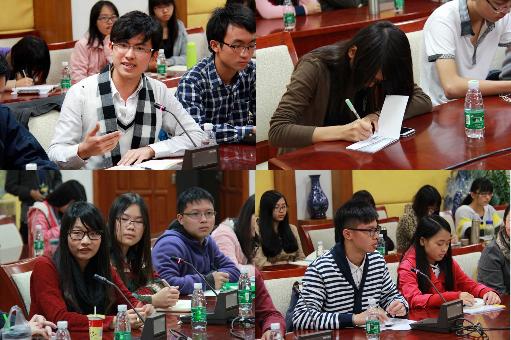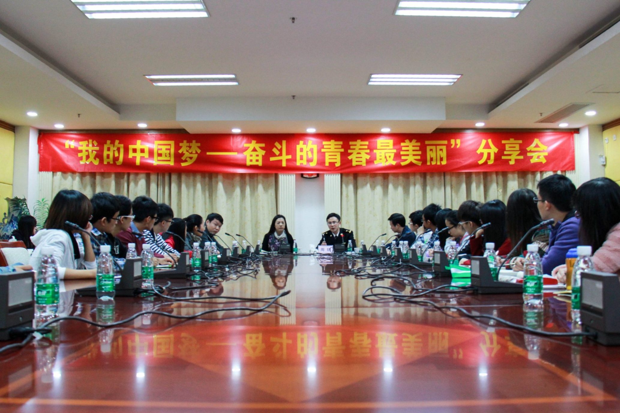 本网讯 11月27日,团中央“我的中国梦,奋斗的青春最美丽”分享会(广外站)在我校南校区校办公楼举行,由团中央遴选的分享团成员之一、云南省昆明海关现场业务处科员周扬分享自己的青春奋斗感悟,并与我校学生代表互动交流。