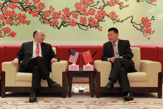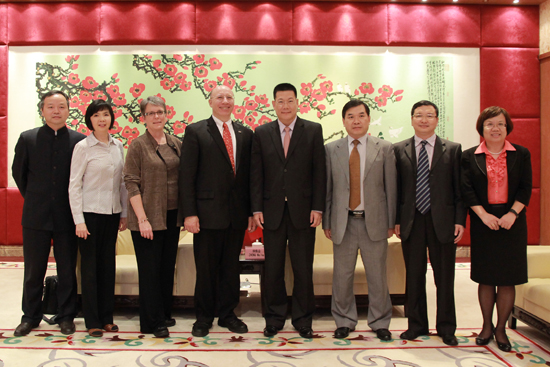 仲伟合首先对代表团的来访表示欢迎,并向乔·贝西介绍了我校的建校历史、在校学生情况以及我校各专业特色。他提到,我校倡导所有学生学好英语。许多学生选择英语作为自己的专业来学习,在高要求的英语教育下,不断提高自己的英语能力。因此我校学生在留学过程中能够较快克服语言交流的难关。目前我校也通过组织各种项目,为学生提供更多的留学机会。