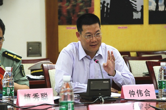 作为广东省推荐检查的三所高校之一,仲伟合首先代表学校对督查调研组表示欢迎。他同时介绍了我校校情历史,强调我校对军训工作的重视。“学生军训一直是我校新生教育的重头戏”,仲伟合表示,“国防教育为四年的大学学习奠定良好的基础”,学校会抓紧军训工作,接受调研组意见和建议,不断完善改进军训工作。