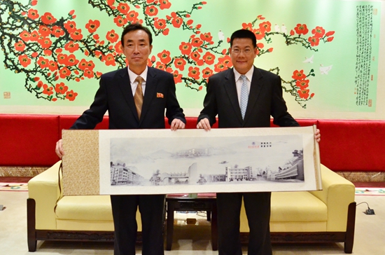 会后,仲伟合及洪庆燮互相赠送了纪念品。