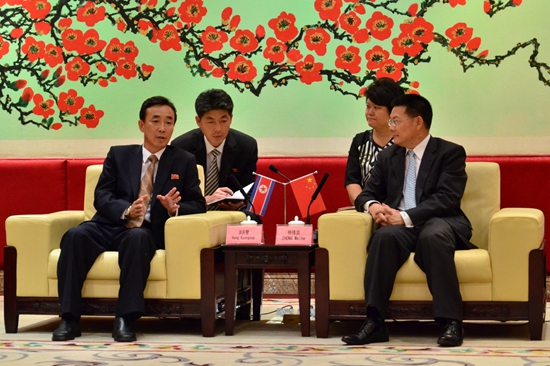 本网讯 10月25日中午,应校长仲伟合邀请,朝鲜平壤外国语大学副校长洪庆燮率该校代表团一行6人访问我校。本次访问系该校首次访问我校,也是我校首次接待来自朝鲜的高校代表团。我校代表团曾于2012年9月拜访该校。