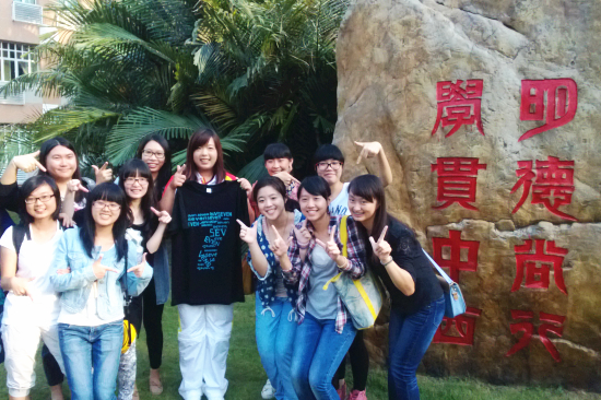 冯珊珊和同学们在校训石合影