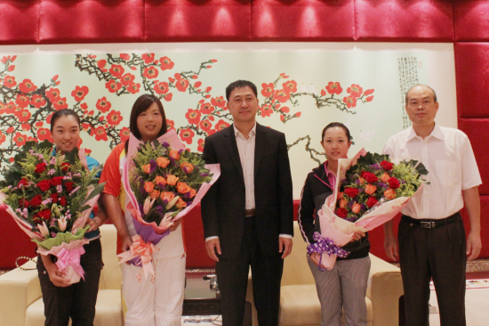 校党委书记隋广军、副书记卢景辉,三位运动员和她们的父母,我校相关学院、部处负责人出席了欢迎会。体育部主任林少娜主持了欢迎会 。