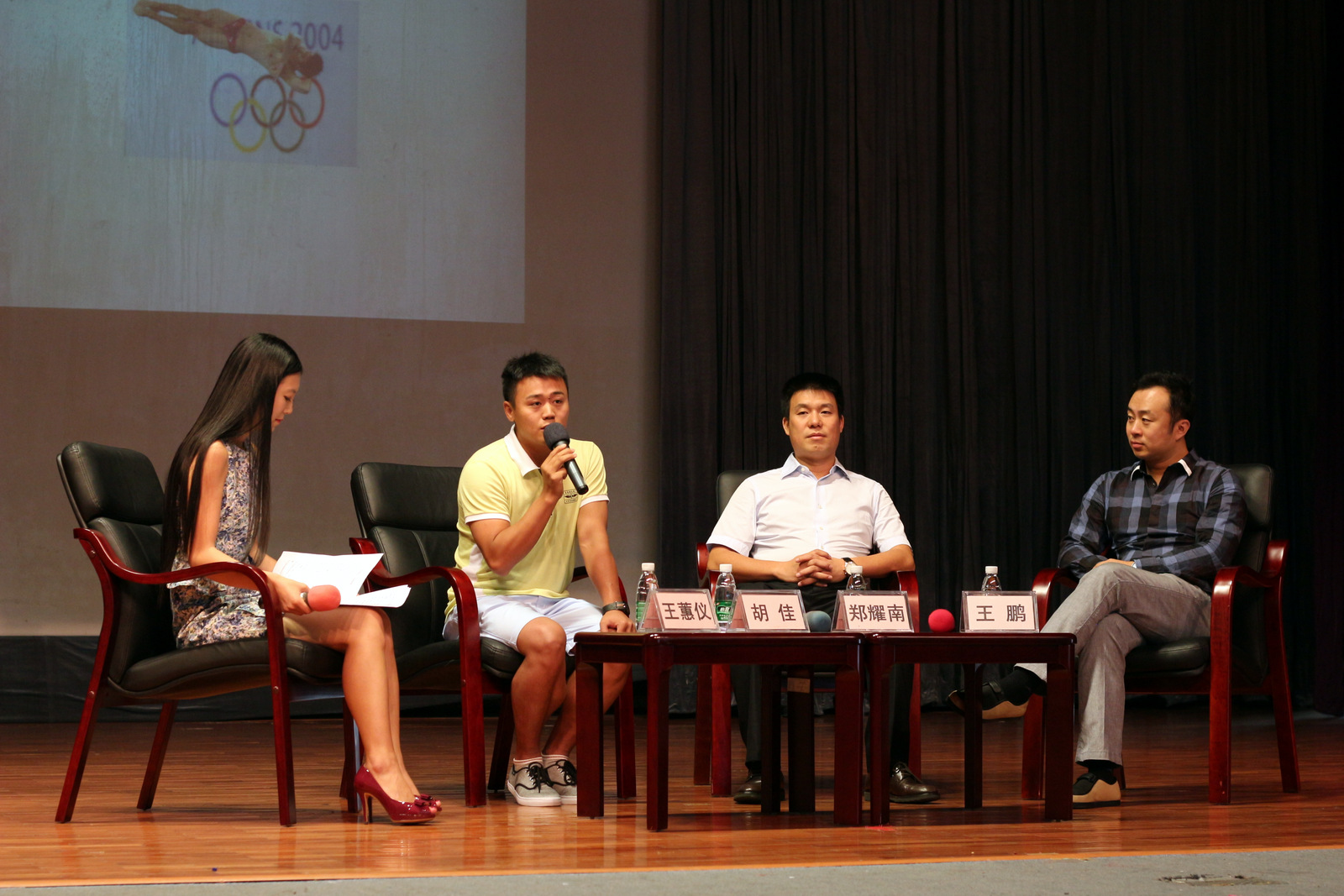 本网讯 10月15日,“对话信仰·奋斗的青春最美丽”——与杰出青年面对面交流活动在我校举行。会上,奥运会跳水冠军胡佳、都市丽人总裁郑耀南、广东电视台著名主持人王鹏分别与来自粤港地区各高校的优秀学子分享成长经历,共同探讨青春梦想的力量。
