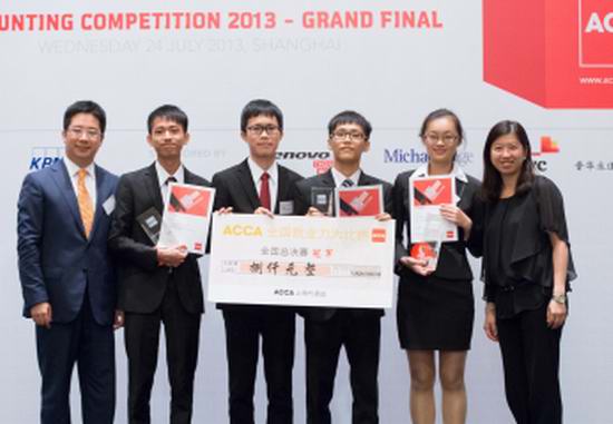 本网讯 2013 ACCA(特许公认会计师公会)就业力大比拼全国总决赛于暑假期间在上海成功举办,从全国各高校四百多支队伍中脱颖而出的八支队伍在总决赛中一决高下。经过激烈角逐,我校财经学院2011级四位ACCA班学子傅鸿鹏、杨雪、林东阳和黄骏鹏凭借出色的表现一举夺得全国总冠军,而来自暨南大学和上海财经大学的代表队则分获亚军和季军。