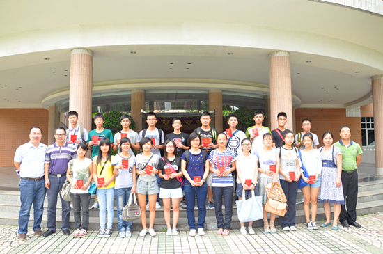 今年暑假由于台风的袭击,广东多地遭遇了洪灾,隋广军一行特地到南校北苑3栋学生宿舍为灾区学生、家庭有困难的学生颁发慰问金。在北校区,仲伟合为各学院贫困生新生代表派发慰问金,并鼓励新生们说:“你们的大学生活开始了,要学会自立,利用好这宝贵的四年时光。有什么困难,学校会全力帮助。”仲伟合一行人还专程到宿舍慰问了来自受灾地区的新生。