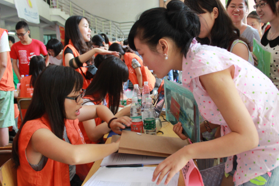 除了志愿者外,各大社团纷纷出动迎接新生。校团委、校学生会和团联成员联合出击,在学校正门口设立“幸福驿站”,为第一次来到广外的学生和家长提供咨询服务;学生就业创业管理中心的成员们手拿带有招新信息的KT板在校道的各个地点给学生和家长指路,热心提供服务的同时也不忘为自己部门宣传;勤工助学中心则在六教拐角摆起桌子,提供纯净水饮用。同时向新生派发校园的简易地图。