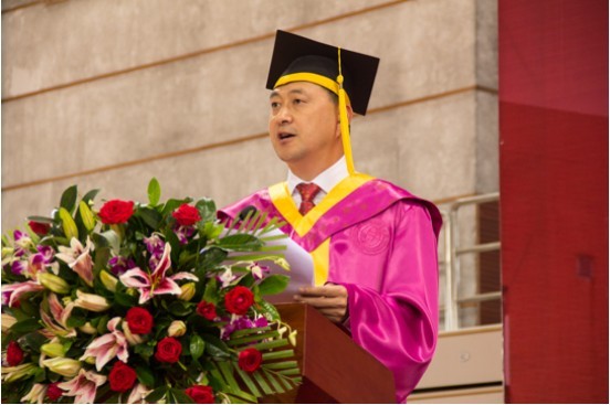 校长仲伟合主持开学典礼,他寄语新生坚守梦想,他说道“人与人之间最小的差距是智商,最大的差距是坚守。”仲伟合认为广外最值得夸耀的不是校友中出了多少顶尖精英,而是进入广外的每一颗金子都能发光。他对新生说道:“亲爱的新同学们,你们就是广外的金子;广外的职责,就是让你们闪闪发光!”