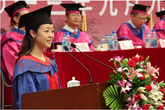 政管学院2004级的唐晓娇作为校友代表与新生们分享了她的大学经历。她认为大学要做好两件事:一是想,想好自己的人生规划;二是做,专注的做一件事,认真的做一个人。