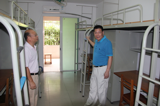在检查中,仲伟合等特别关注与师生利益密切相关,师生集中关注度高的工作。在南校区学生宿舍二栋和北校区学生宿舍13栋,他们到学生宿舍里体验学生住宿条件,还到南校区学生第一食堂(文采园)操作间详细检查了食堂的卫生情况和开学前准备情况。在南校区学生活动中心和北校区体育馆等地,检查组现场办公,协调学生处、就业指导中心和体育部等相关单位,解决学生创业中心场地问题。在检查中,仲伟合特意对“校长信箱”中学生反映问题的个别校园死角卫生和安全问题现场指示,要求后勤处和保卫处务必解决。在北校区幼儿园,仲伟合等听取了园长的汇报,现场了解幼儿园装修工程的进展情况,并承诺为方便幼儿园师生出入增加一道便桥。