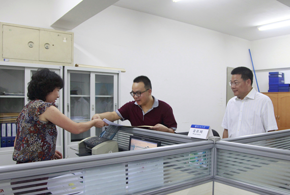 本网讯 8月31日,我校新学期教职工上班第一天,三位新进教工来校报到,并办理相关的手续。与其他教工不同的是,他们多了一位特殊的陪同者——校长仲伟合。据悉,这是我校落实党的群众路线教育实践活动的一项举措:“转换角色、切身体验”,即校长以服务对象的身份,从首程序开始办一件事,全程体验工作作风和服务质量。