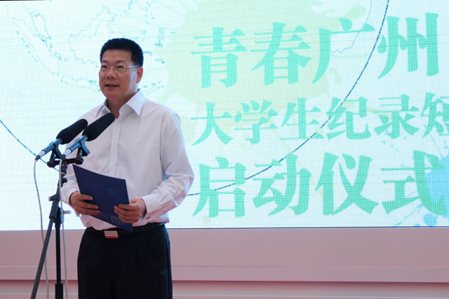 我校校长仲伟合,广州市人民政府新闻办公室主任欧彩群、广州市文化广电新闻出版局副局长任天华,我校党委宣传部部长胡文涛、校团委书记谢秀兰、新闻学院院长郭光华和党委书记孔晓明,广州地区高校师生代表、各学生剧组代表等出席启动仪式。