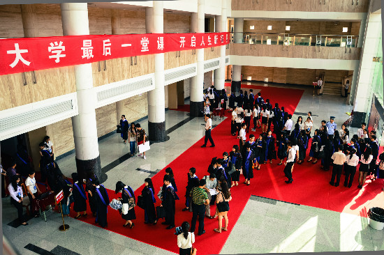 “脑海之中有个凤凰花开的路口,有我最珍惜的朋友。”在这个凤凰花笑最灿烂的时候,学士服也成了校园最美的风光。广外09级的毕业生穿过时间的拱门,跨过年岁的交界,终于走到了大学最后一堂课——毕业典礼。