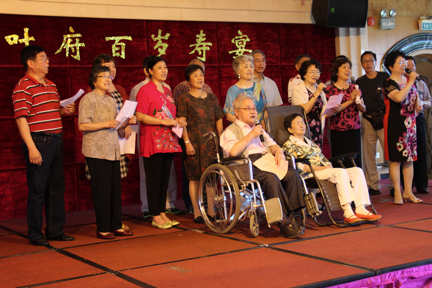 叶老共育有10个子女,来自全国乃至世界各地的儿女子孙共100余人专程前往广州,为叶老祝寿。10个家庭纷纷献上精心准备的诗朗诵、歌曲、舞蹈等文艺汇演节目,四世同堂的和谐画面为礼堂锦上添花。叶老精神矍铄,欣然接受大家的祝福,并亲手切下生日蛋糕,与大家分享喜悦。