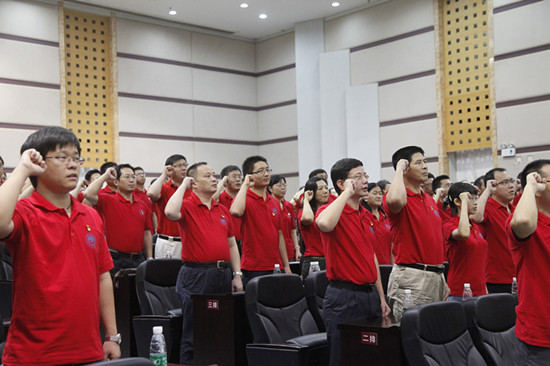 在珠海报业大厦会议厅内,组织部、统战部部长方迎生宣布此次党日活动正式开始。在庄严的国歌奏唱完毕后,全体党员在陈建平的带领下重温入党誓词。